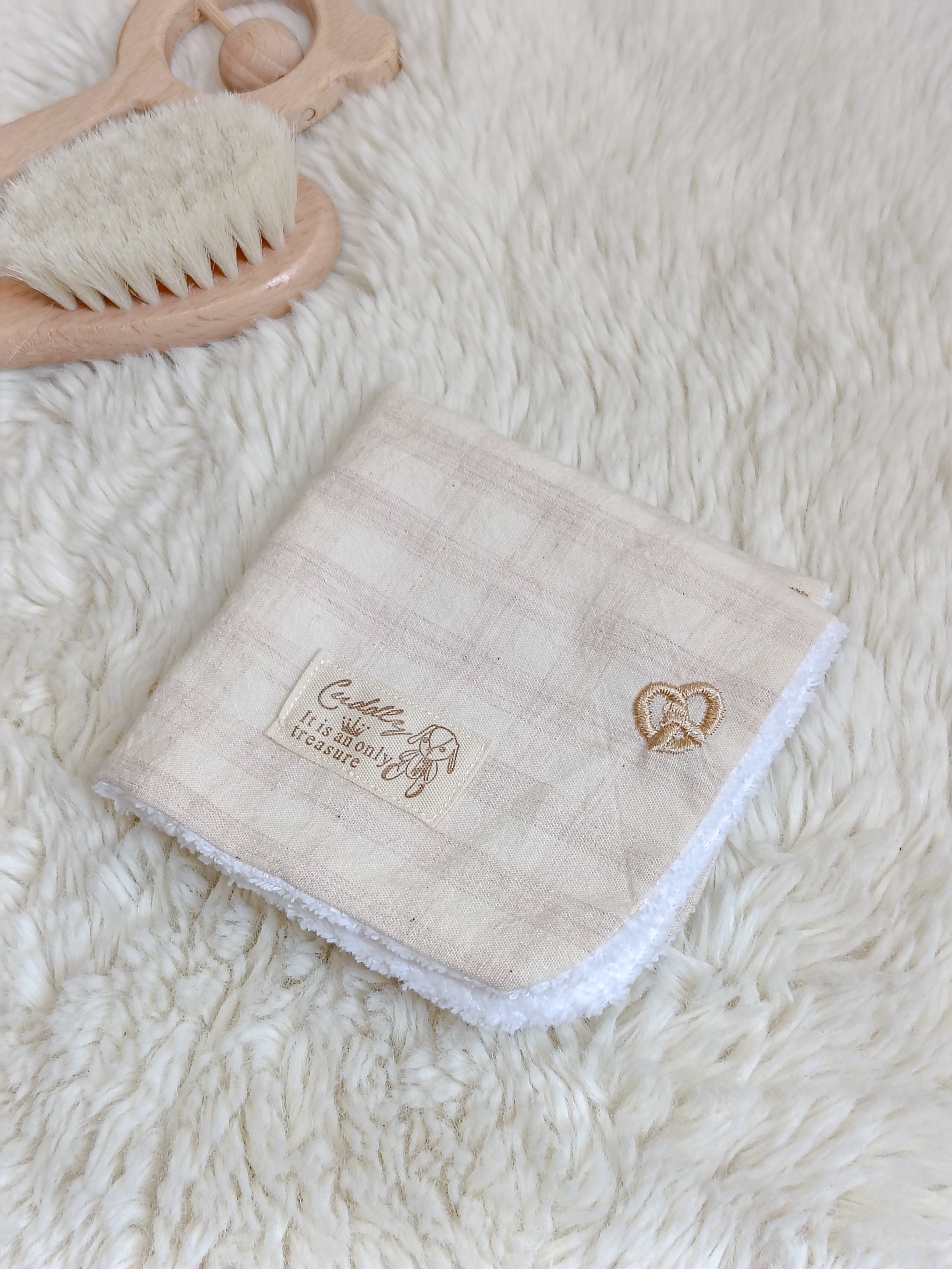スタイとお揃いのデザインで、裏地はパイル地になっていて、ふんわりとしたさわり心地です